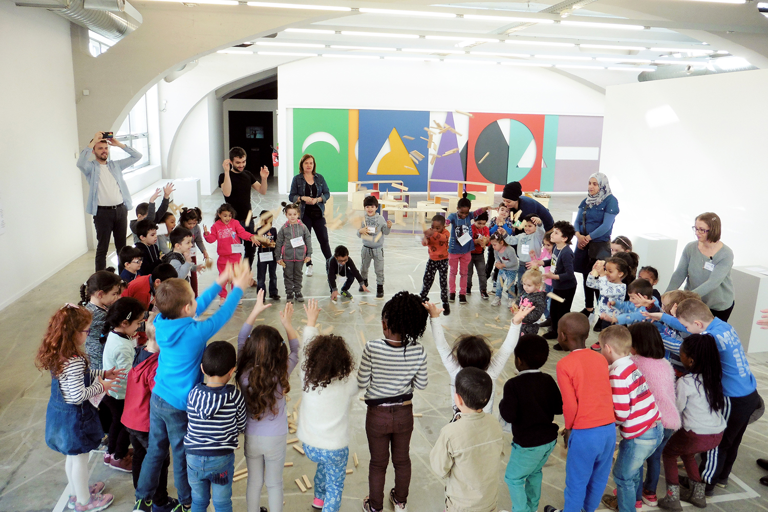 dans la classe d’eveil musical avec plusieurs artistes de Dreieck Interferences en collaboration avec Jazz dor